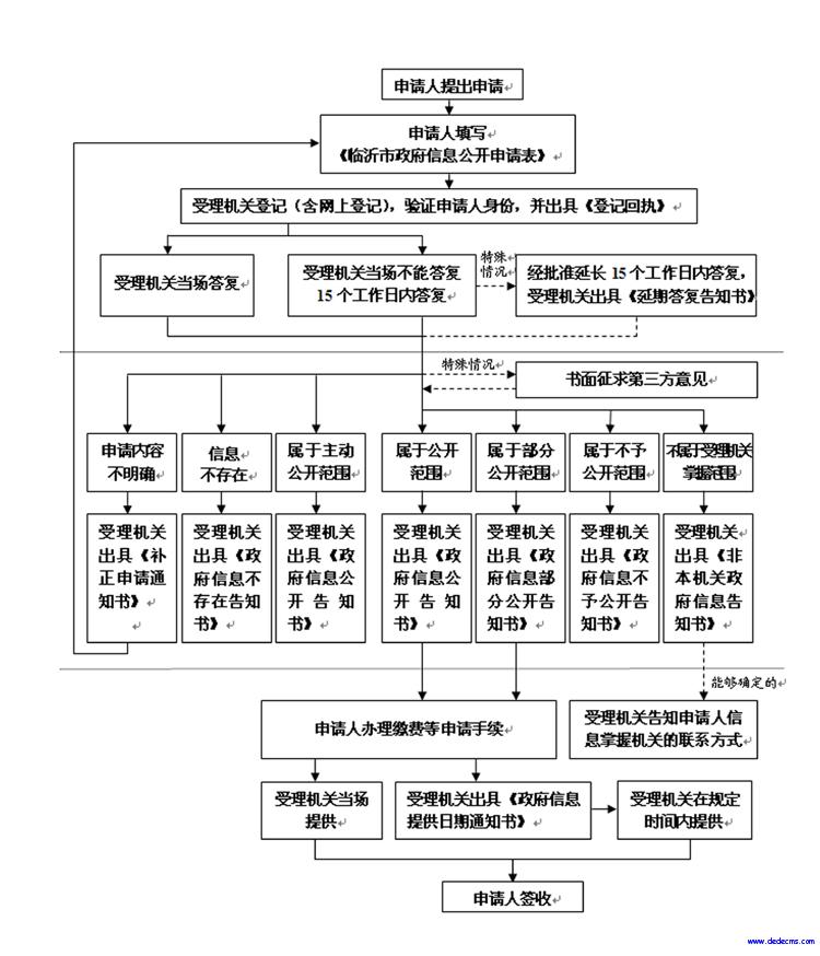临沂市民政局处理政府信息公开申请流程图