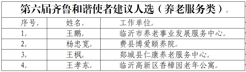 根据《齐鲁和谐使者选拔管理办法》等有关规定,经组织推荐、资格审查、评审选拔等程序,评选出我市第六届齐鲁和谐使者建议人选10名。