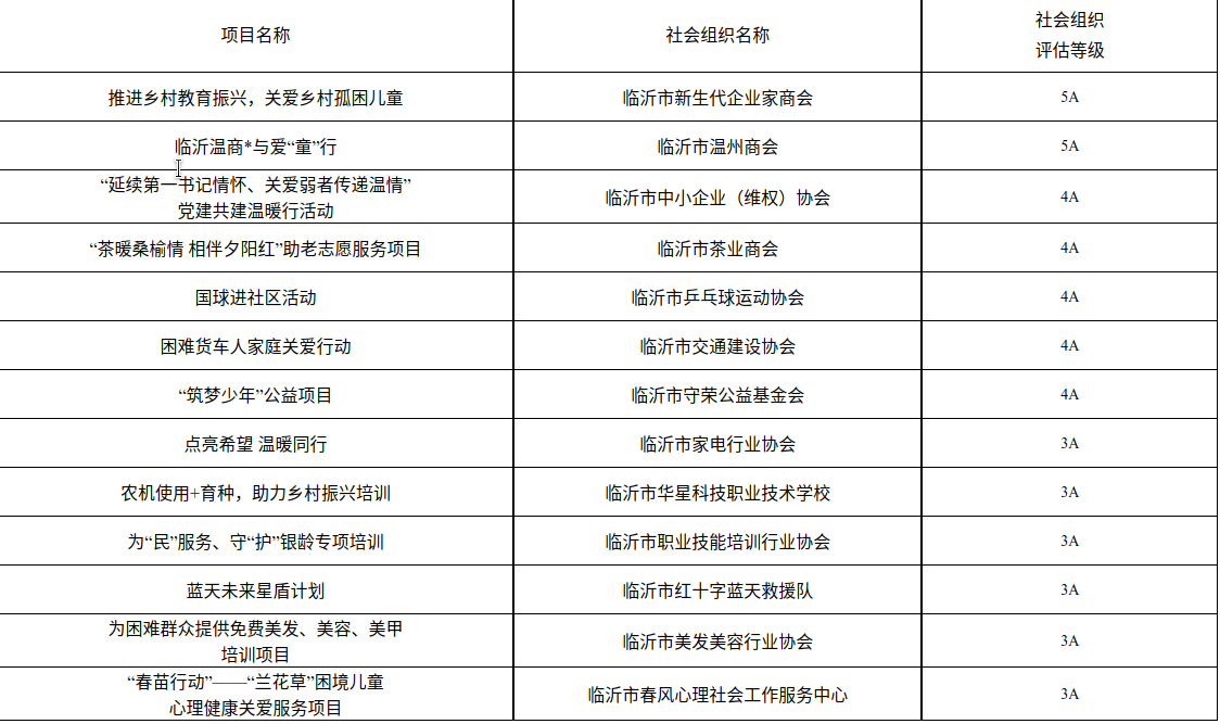 2025年临沂市市级社会组织发展资金支持社会组织参与社会服务项目拟立项名单