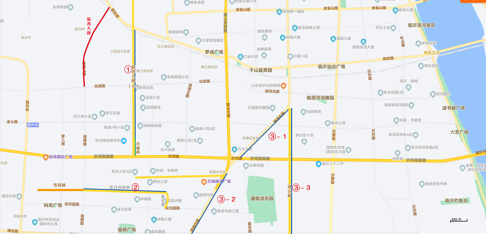 西南起沂河路,东北至通达路与通达路取直工程新修路段交汇口 |